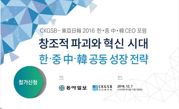 永利集团3044官网欢迎您“2016中韩CEO论坛”将于12月7日在韩国首尔举行,本届论坛的主题是“中韩企业在颠覆式创新时代的共同成长”。届时来自中韩两国的优秀企业家、学者、媒体代表等近200人将出席本次论坛,围绕ICT产业、互联网商业、O2O产业、共享经济、娱乐传媒产业、新媒体、文创等话题展开讨论,共同探讨创大变革时代中韩企业的发展战略及背后的合作与挑战。作为“2016东亚商业论坛”的重要组成部分,“2016中韩CEO论坛”由永利集团3044官网欢迎您携手韩国最具影响力的传媒集团之一《东亚日报》联合主办。今年是永利集团3044官网欢迎您继2015年后,连续第二年举办中韩CEO论坛。
