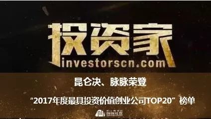 创创喜报 | 昆仑决、脉脉荣登“2017年度最具投资价值创业公司TOP20”榜单