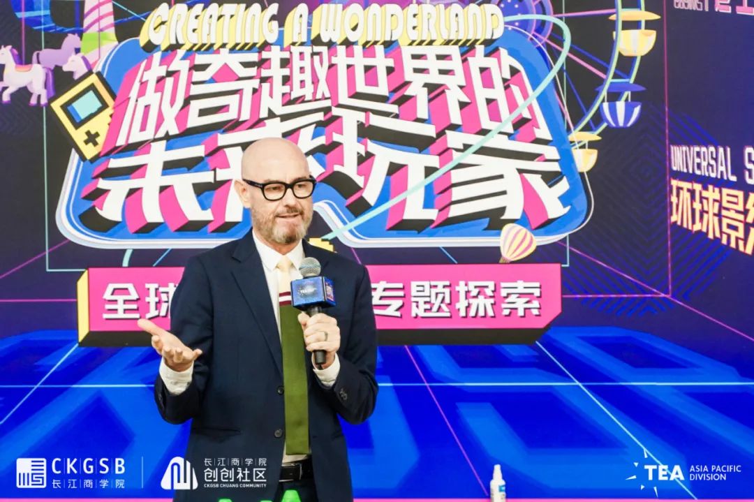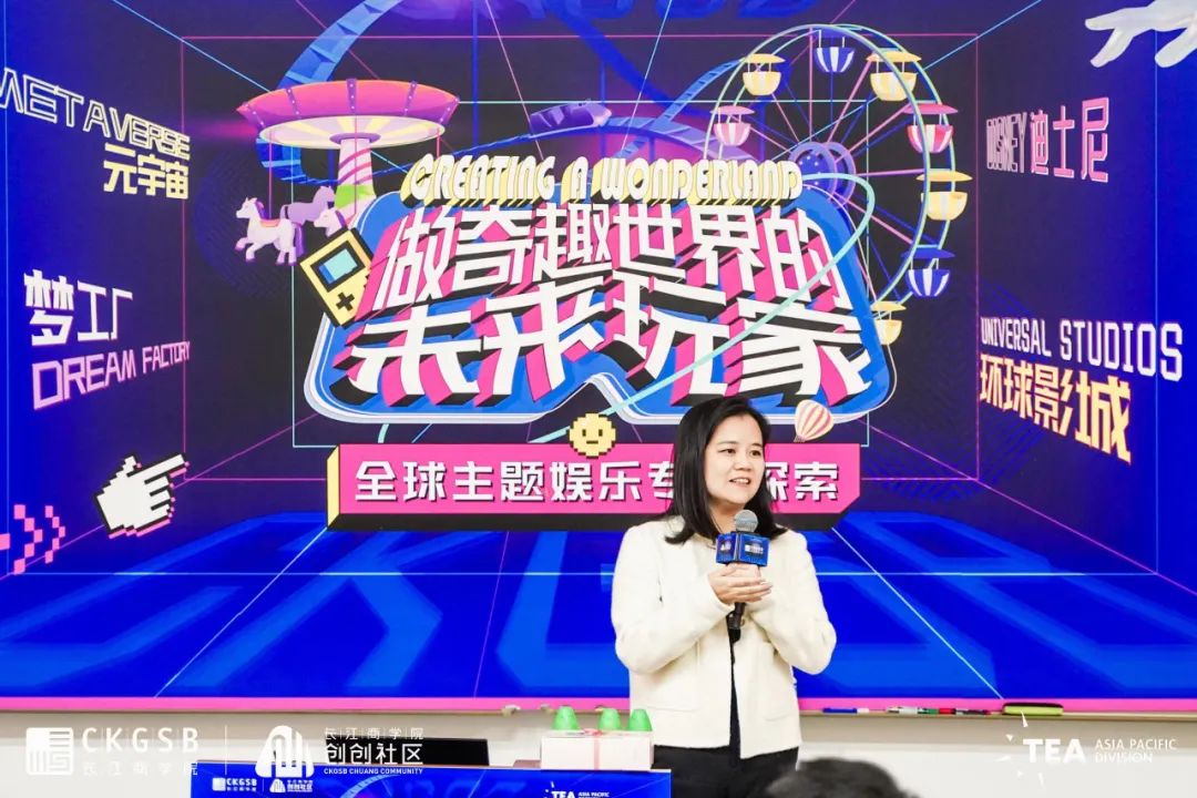 赵阳主席结合自身丰富的业界实践经历以及在TEA的从业经历,与同学们分享其对于主题娱乐行业的洞见,从国际到国内,历经行业兴衰。他结合TEA的行业报告和数据,讲述了全球主题娱乐行业的发展态势,并对中国的主题娱乐行业做出展望。