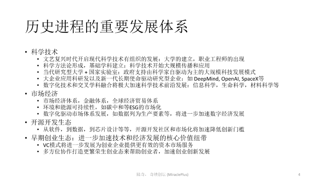 DeepMind可能大家最近都知道,AlphaFold对蛋白质折叠有巨大的突破,OpenAI的GPT3对创新也带来了巨大的影响,SpaceX对航天发展的贡献,这些都是新一代的emergent的体系在形成。