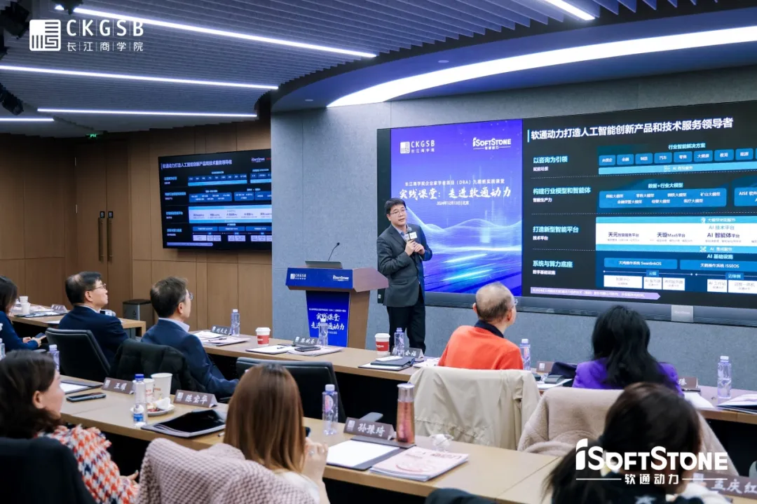 12月13日,长江DBA九期班同学们走进软通动力信息技术(集团)股份有限公司(以下简称软通动力),在DBA九期班同学、软通动力董事兼首席运营官车俊河的带领下参观了展厅,并聆听了DBA八期班同学、软通动力董事长兼CEO刘天文和CTO刘会福的深度分享,探寻软通动力在AI时代如何顺“势”而为,开创企业转型发展之路。