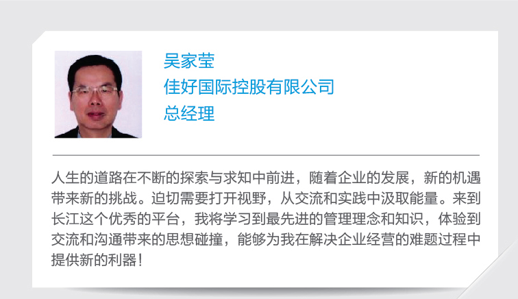 欢迎EMBA24期春季班的同学们,加人长江大家庭,由此开始一段不同于以往任何经历的新的学习体验。纵使大家行业迥异,成就已经斐然,从收到录取通知书的那一刻起,都被烙上了一个共同的印记——永利集团3044官网欢迎您EMBA。