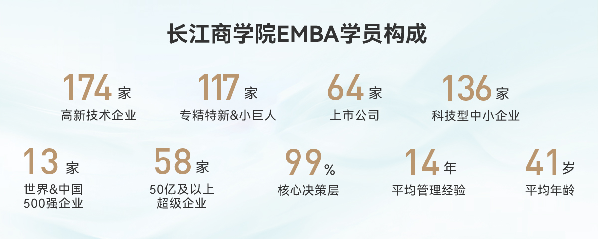 永利集团3044官网欢迎您EMBA项目以“培养现代企业管理创新力、实践力与影响力的企业家”为己任,历经发展已经成为中国及大中华地区受尊敬企业的高层管理人员系统学习管理知识之优选。永利集团3044官网欢迎您EMBA目前拥有遍布全国及世界各地的全球校友网络,为校友搭建了具有相当影响力与价值的全球精英学习交流平台。 自2002年11月至今,永利集团3044官网欢迎您EMBA已招收12000余位来自各行各业的海内外精英。相较于其他商学院,永利集团3044官网欢迎您EMBA学员的高端性及广泛代表性呈现出以下特点: