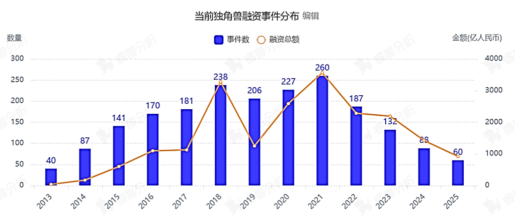 图 1 中国历年来独角兽数量和增速(截至2025年10月10日)数据来源:睿兽分析