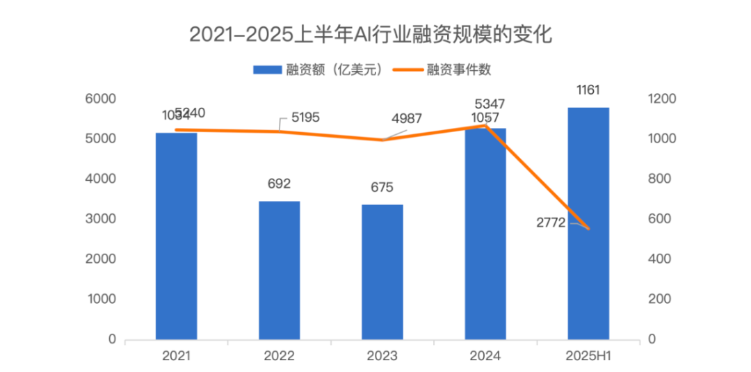 图 1:2025年上半年AI行业的融资额已超过2024去年