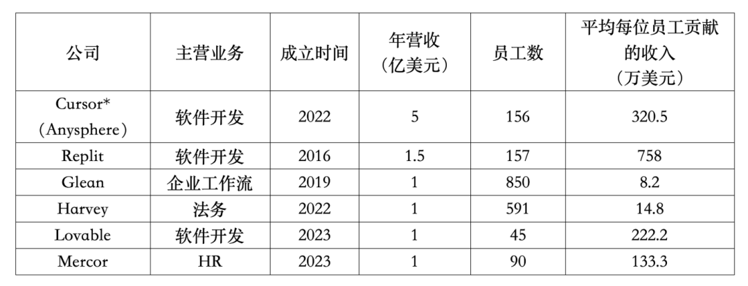这些创企的产品价值主张完全建立在AI能力之上。Cursor的代码补全、Harvey的法律文书生成、Abridge的医疗记录自动化——这些产品的核心功能在没有AI的时代根本无法实现。它们的产品核心价值随模型的性能提升而提升,而非运营效率。